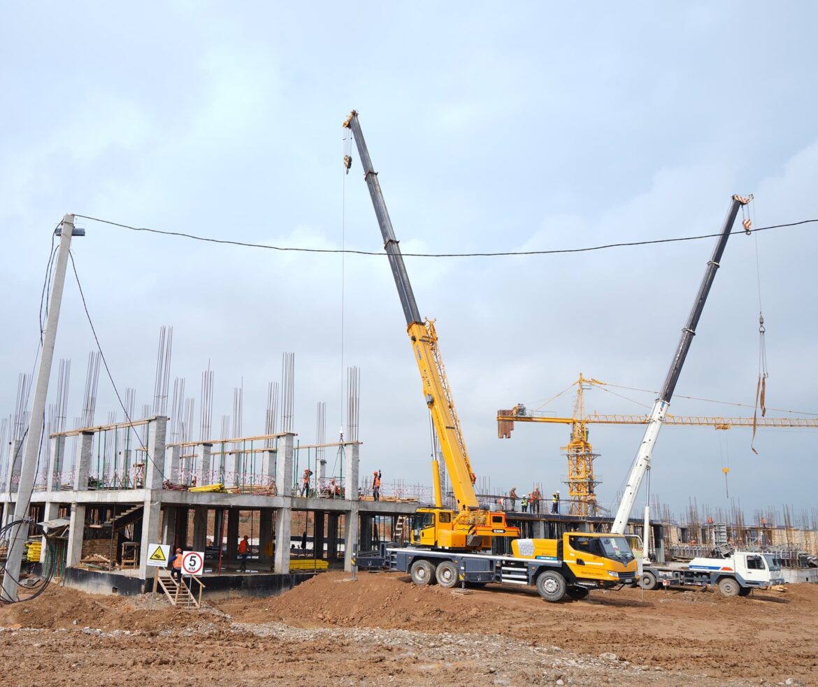 Құрылыс нысанында қазіргі уақытта 80 адам жұмыс істеп жатыр. Жертөле қабырғалары құйылып, жабын қабаттарының темір бетон құю жұмыстары жүргізілуде. Кірпіш қалау жұмыстары жүргізілуде.