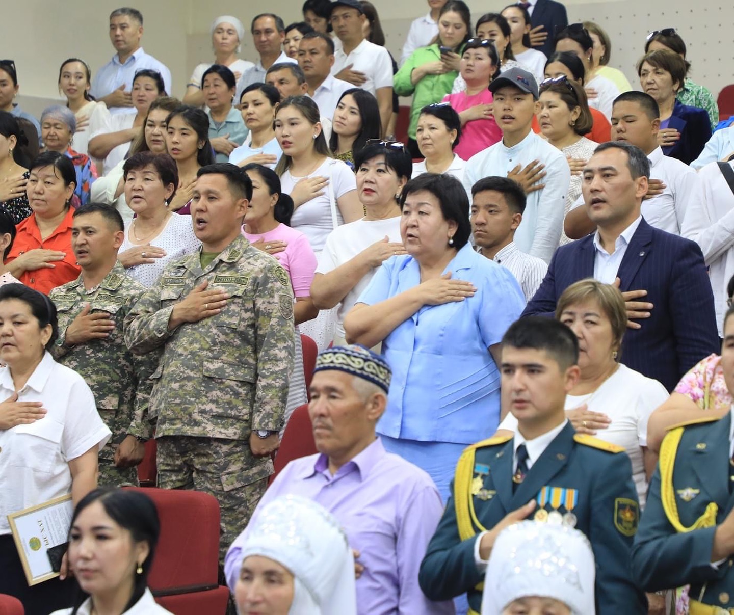 Мерекелік шараға қала әкімі Гүлжан Құрманбекова, қалалық Ардагерлер кеңесінің төрағасы Тәңірберген Әсіл, зиялы қауым өкілдері мен жастар, әскери бөлім сарбаздары мен қала тұрғындары қатысты. Мемлекеттік Әнұранды орындаумен басталған жиында сөз алған шаһар басшысы Гүлжан Мамытқызы тұрғындарды Мемлекеттік рәміздер мерекесімен құттықтады.