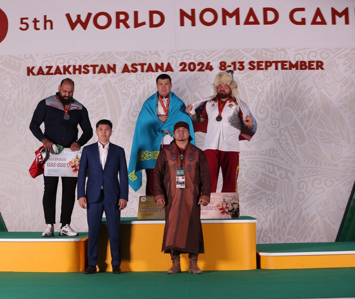 Түркістан облысы, Арыс қаласының қайратты азаматы Азамат Мақұлбеков бөрене көтеру сайысында 130 келі бөренені 38 рет көтеріп өз рекордын жаңартты. Сондай-ақ ауыр найзаны нысанаға лақтыру сайысында да ең үздік нәтижені көрсетті. Ақтық сында, Азамат Мақұлбеков 100 келі салмақтағы серкені 7 рет көтерді. Жарысқа қатысушылар ішінде салмағы ең аз болса да, жерлесіміз жарты тонналық арбаны құмның үстінде 12,9 метрге сүйреді. Қортындысында, Қазақстандық алып барлық кезеңде көш бастап, жеңімпаз атанды.