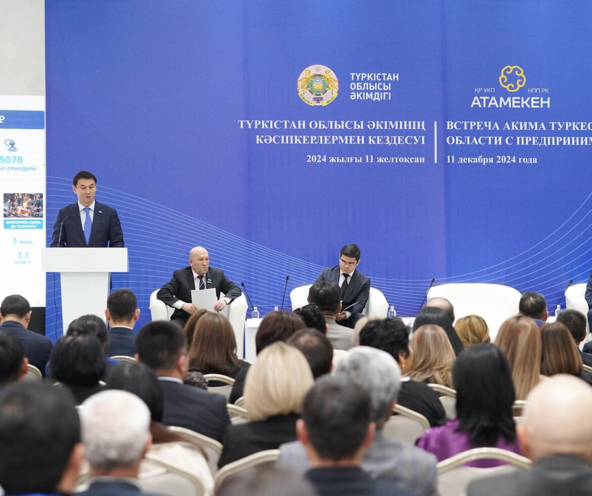 АКИМ ТУРКЕСТАНСКОЙ ОБЛАСТИ ДАРХАН САТЫБАЛДЫ ВСТРЕТИЛСЯ С ПРЕДПРИНИМАТЕЛЯМИ РЕГИОНА