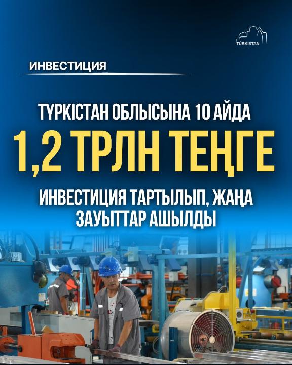 Нәтижесінде, Түркістан облысына 10 ай ішінде 1,2 трлн теңге инвестиция тартылды, бұл өткен жылмен салыстырғанда 124,2 пайыз өсімге тең. Мұндай қарқынды даму өңірдің инвестициялық тартымдылығының артуын көрсетіп қана қоймай, шетелдік инвесторлармен келіссөздердің тұрақты жүргізіліп, жаңа жобалардың жүзеге асырылуын да дәлелдейді.