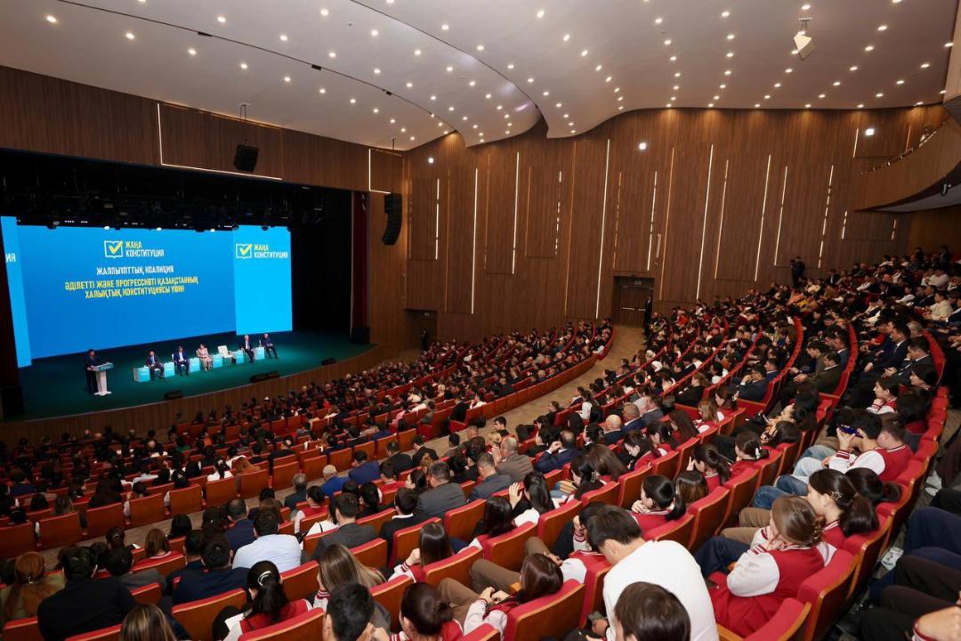 Түркістан қаласындағы конгресс-холлда мыңнан астам адам жиналды. Зиялы қауым өкілдері, дәрігерлер, педагогтар, кәсіпкерлер, ардагерлер, жастар және волонтерлер – әр түрлі жастағы азаматтар мен мамандық иелері Коалиция мүшелерінің жаңа Конституция жобасы жөніндегі пікіріне құлақ түріп, өз ойымен бөлісті және сұрақтарын қойды.